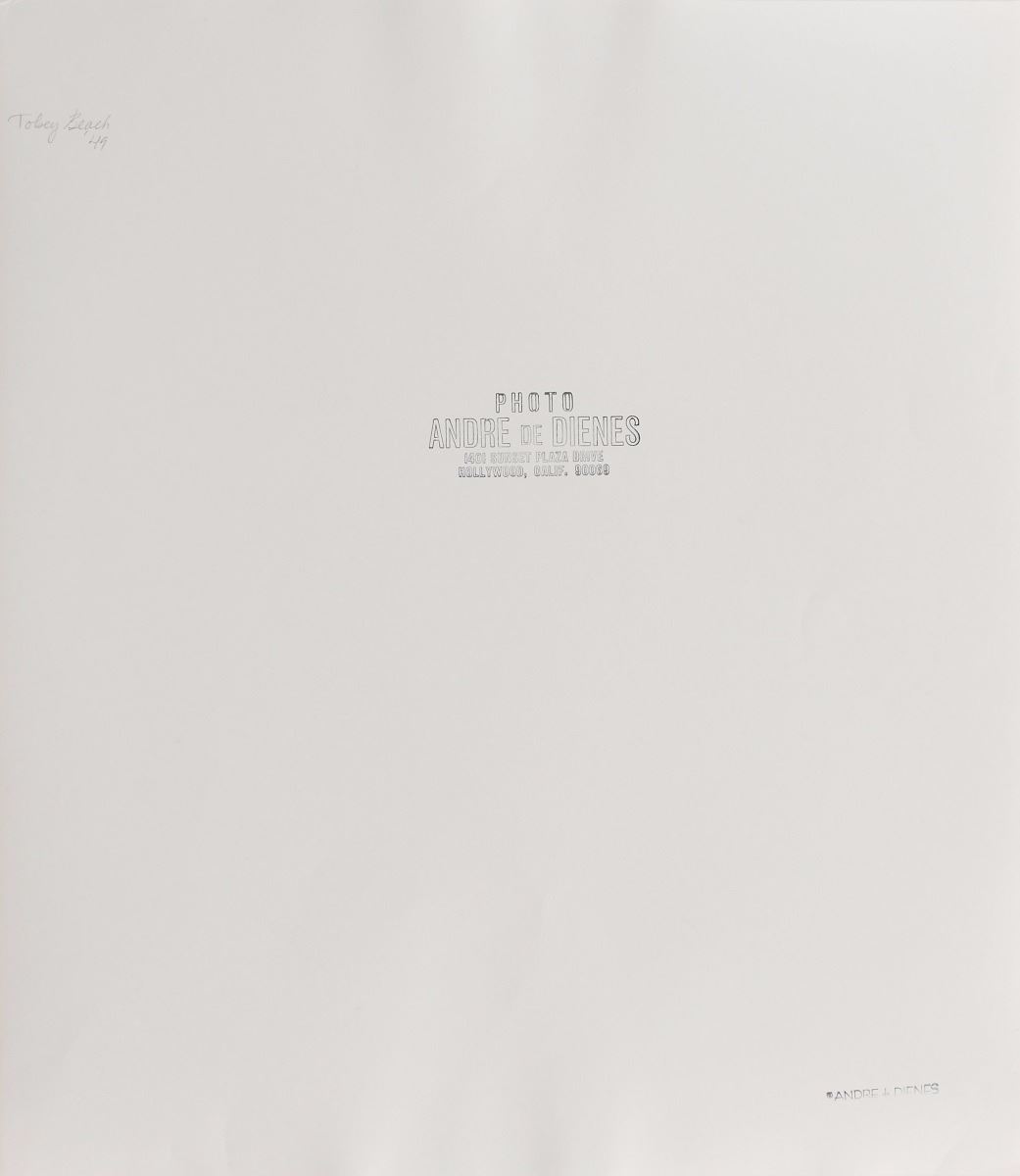 Iconic vintage matte-finish 20 x 23.25 gelatin silver full-length photograph of Monroe in a cheeky pose at Long Island’s Tobey Beach in 1949. Reverse bears two Andre de Diene photography stamps. In fine condition. In 1945, de Dienes became the first photographer to shoot the young Norma Jeane as a professional model. His photos of Monroe appeared on over twenty-three magazine covers from 1945 to 1949 worldwide. Photos by de Dienes remain highly desirable.