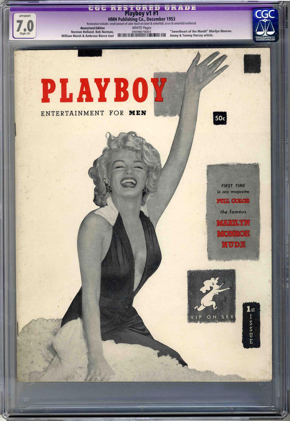 Very rare first issue of ''Playboy'' magazine, December 1953, Volume I in fine condition. Landmark issue of Hugh Hefner's pioneering and controversial men's magazine, featuring the famous color centerfold of Playboy's very first ''Sweetheart of the Month,'' Marilyn Monroe. The magazine was originally titled ''Stag Party,'' until an unrelated outdoor magazine titled ''Stag'' threatened to sue Hefner. The replacement name ''Playboy'' came from Hefner's executive vice president Eldon Sellers, who named it after the short-lived Chicago company Playboy Automobile Company, where Sellers' mother had worked. The first issue, with its 50 cent cover price, did not carry a date, as Hefner was unsure whether or not there would even be a second issue. However, ''Playboy'' proved an instant sensation, selling out its initial 53,991 circulation in a matter of weeks. The mostly black-and-white issue includes a parlor strip game pictorial entitled ''Playboy Party Jokes;'' Virgil Partch cartoons mocking the Kinsey Report; full color gag cartoons; and the Sir Arthur Conan Doyle excerpt ''Introducing Sherlock Holmes.'' CGC graded as 7.0, in fine condition with ''...a small amount of color touch on cover & centerfold, cover & centerfold reinforced...'' White pages. A much-coveted piece in near fine condition.