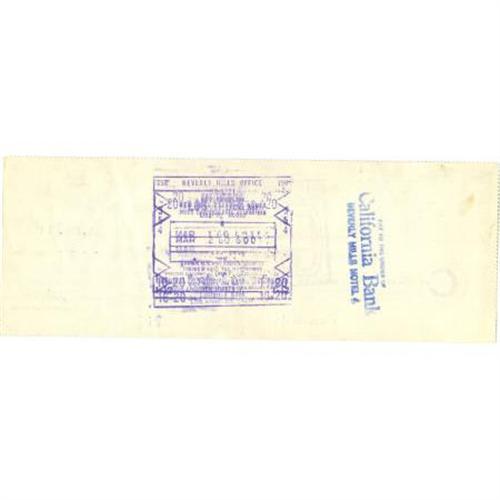 <B>Marilyn Monroe Signed Check.</B></I> A check for $1,231.91 from Marilyn Monroe Productions to the Beverly Hills Hotel, dated February 26, 1960, signed by Monroe in black ink. In Very Fine condition with mild wear and the usual bank cancellation marks. <I>Accompanied by a COA from PSA/DNA.</B></I><BR><BR><b>Shipping:</b> Flat Material, Small (<a target="_blank" href="http://www.heritageauctions.com/common/shipping.php">view shipping information</a>)