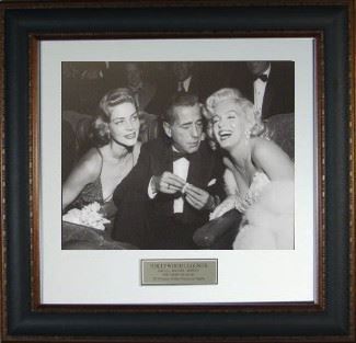 Humphrey Bogart was an American screen actor who, with performances in films during the 1940s such as The Maltese Falcon, Casablanca, and The Big Sleep, became widely regarded as a cultural icon. In 1999, the American Film Institute ranked Bogart as the greatest male star in the history of American cinema. Lauren Bacall was an American actress known for her distinctive voice and sultry looks. She began her career as a model. In 1999, Bacall was ranked 20th out of the 25 actresses on the AFI's 100 Years...100 Stars list by the American Film Institute. Marilyn Monroe was an American actress, model, and singer, who became a major sex symbol, starring in a number of commercially successful motion pictures during the 1950s and early 1960s. This is a Lauren Bacall, Humphrey Bogart, and Marilyn Monroe custom matted and premium leather framed unautographed 16x20 Photo.