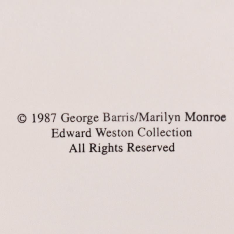 "Marilyn Monroe: The Last Shoot" is a photograph printed from the original negative taken by George Barris (1922-2016), hand signed by the photographer. This photo is part of a series entitled "The Last Photos"; they were taken in 1962 just two weeks before Monroe's death and are considered the last photos ever taken of the icon. This photo bears the Edward Weston copyright stamp inverso and Includes Letter of Authenticity. Measures approx. 11" x 14" (image). Please note: due to the age of this piece the paper is slightly wavy.