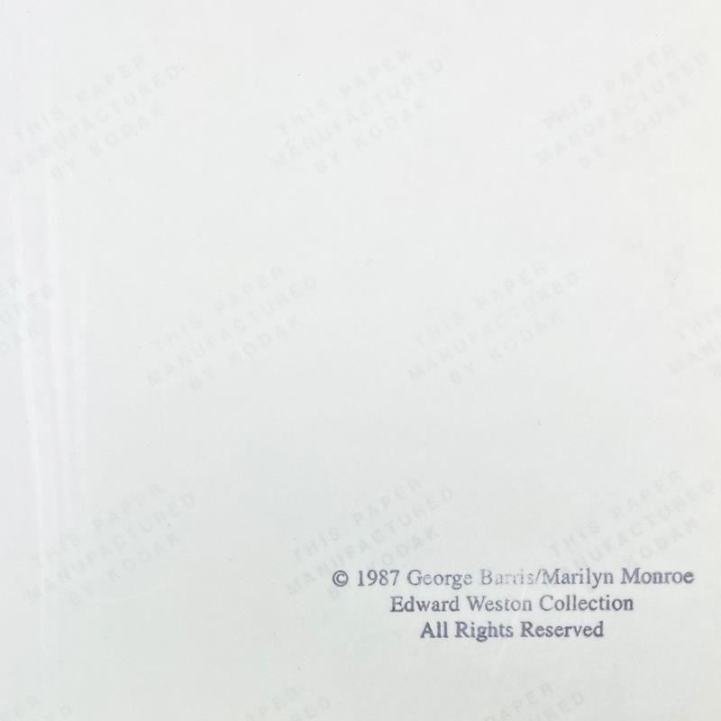 Marilyn Monroe by George Barris (1922-2016). "Marilyn Monroe: The Last Shoot" is a photograph printed from the original negative taken by George Barris (1922-2016). This photo is part of a series entitled "The Last Photos"; they were taken in 1962 just two weeks before Monroe's death and are considered the last photos ever taken of the icon. This framed piece is numbered inverso and hand signed by the photographer. This photo bears the Edward Weston copyright stamp inverso and Includes Letter of Authenticity. Measures approx. 19" x 22" (frame), 11" x 14" (image).