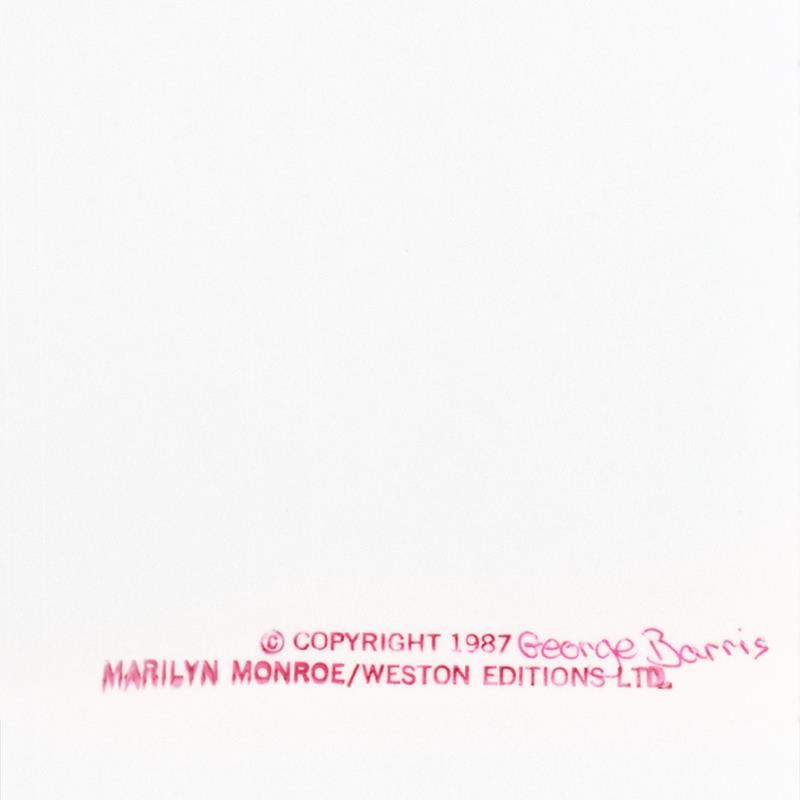 "Marilyn Monroe: The Last Shoot" is a photograph printed from the original negative taken by George Barris (1922-2016). This photo is part of a series entitled "The Last Photos"; they were taken in 1962 just two weeks before Monroe's death and are considered the last photos ever taken of the icon. This piece is numbered inverso 49/99 and hand signed by the photographer. This photo bears the Edward Weston copyright stamp inverso and Includes Letter of Authenticity. Measures approx. 8" x 10" (image).