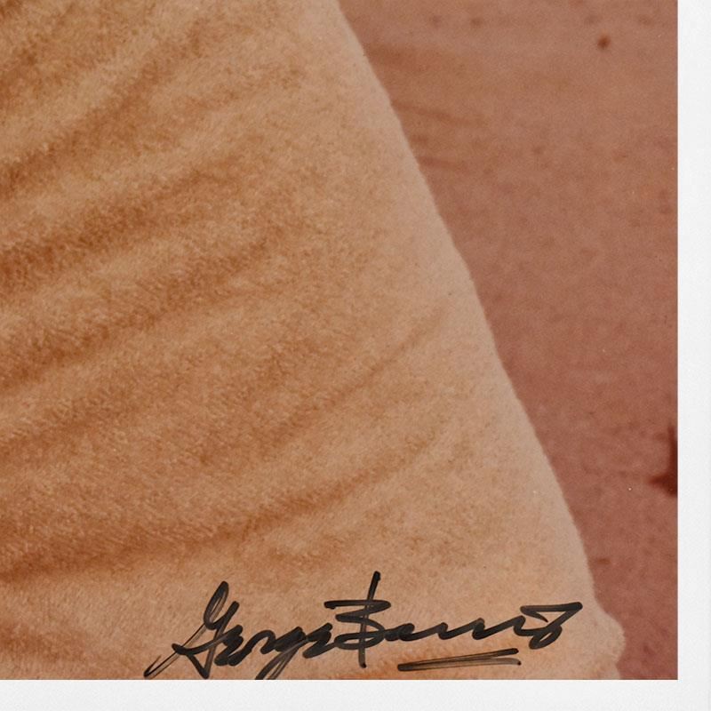 "Marilyn Monroe: The Last Shoot" is a photograph printed from the original negative taken by George Barris (1922-2016), hand signed by the photographer. This photo is part of a series entitled "The Last Photos"; they were taken in 1962 just two weeks before Monroe's death and are considered the last photos ever taken of the icon. This photo bears the Edward Weston copyright stamp inverso and Includes Letter of Authenticity. Measures approx. 14" x 11" (image). Due to the age of the piece the paper is slightly wavy.