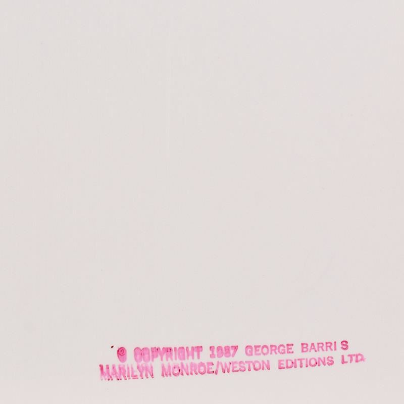 "Marilyn Monroe: The Last Shoot" is a photograph printed from the original negative taken by George Barris (1922-2016), hand signed by the photographer. This photo is part of a series entitled "The Last Photos"; they were taken in 1962 just two weeks before Monroe's death and are considered the last photos ever taken of the icon. This photo bears the Edward Weston copyright stamp inverso and Includes Letter of Authenticity. Measures approx. 11" x 14" (image).