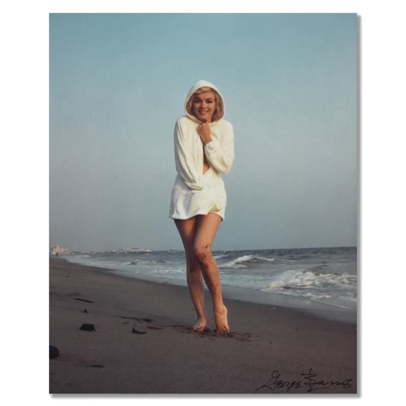"Marilyn Monroe: The Last Shoot" is a photograph printed from the original negative taken by George Barris (1922-2016). This photo is part of a series entitled "The Last Photos"; they were taken in 1962 just two weeks before Monroe's death and are considered the last photos ever taken of the icon. This piece is numbered inverso and hand signed by the photographer. This photo bears the Edward Weston copyright stamp inverso and includes Letter of Authenticity. Measures approx. 8" x 10" (image).