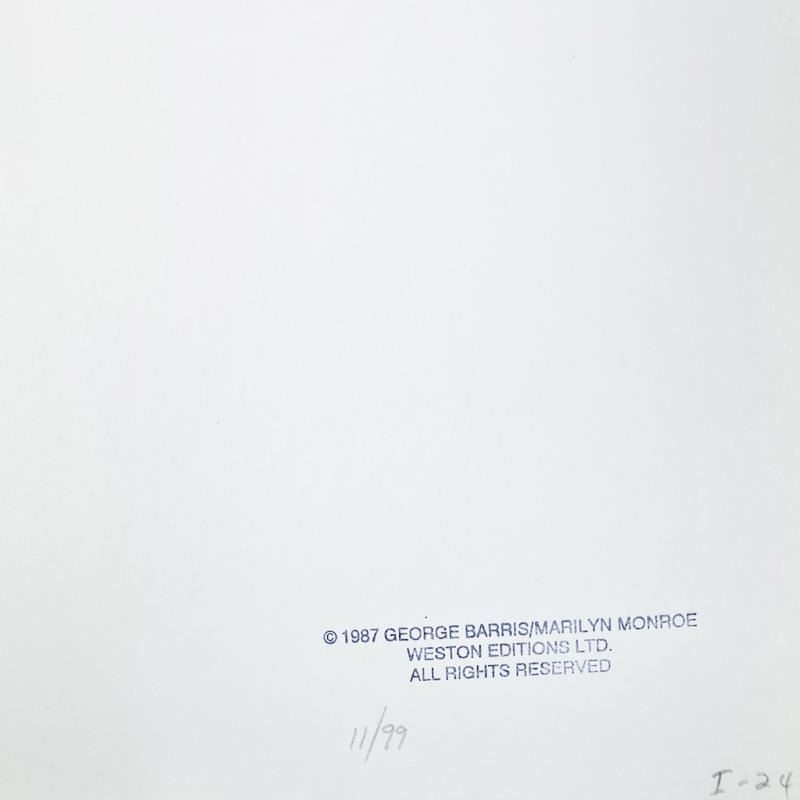 "Marilyn Monroe: The Last Shoot" is a photograph printed from the original negative taken by George Barris (1922-2016). This photo is part of a series entitled "The Last Photos"; they were taken in 1962 just two weeks before Monroe's death and are considered the last photos ever taken of the icon. This framed piece is numbered inverso and hand signed by the photographer. This photo bears the Edward Weston copyright stamp inverso and Includes Letter of Authenticity. Measures approx. 19" x 22" (frame), 10" x 13" (image).