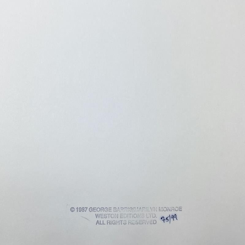 "Marilyn Monroe: The Last Shoot" is a photograph printed from the original negative taken by George Barris (1922-2016). This photo is part of a series entitled "The Last Photos"; they were taken in 1962 just two weeks before Monroe's death and are considered the last photos ever taken of the icon. This framed piece is numbered inverso and hand signed by the photographer. This photo bears the Edward Weston copyright stamp inverso and Includes Letter of Authenticity. Measures approx. 19" x 22" (frame), 10" x 13" (image).