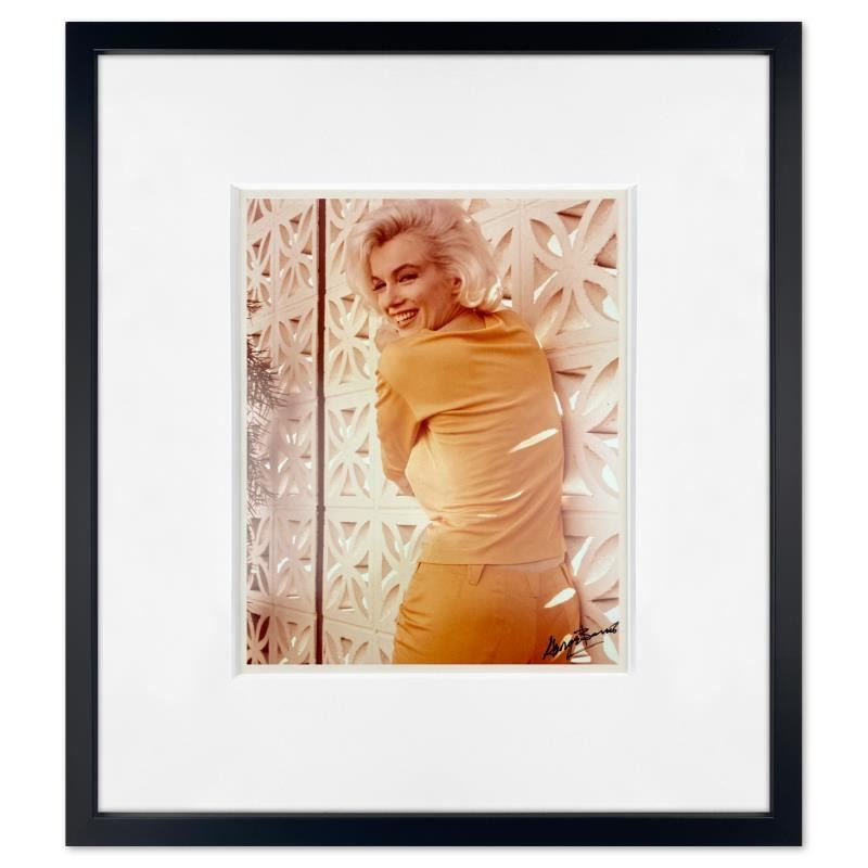 "Marilyn Monroe: The Last Shoot" is a photograph printed from the original negative taken by George Barris (1922-2016). This photo is part of a series entitled "The Last Photos"; they were taken in 1962 just two weeks before Monroe's death and are considered the last photos ever taken of the icon. This framed piece is numbered inverso and hand signed by the photographer. This photo bears the Edward Weston copyright stamp inverso and Includes Letter of Authenticity. Measures approx. 19" x 22" (frame), 11" x 14" (image).