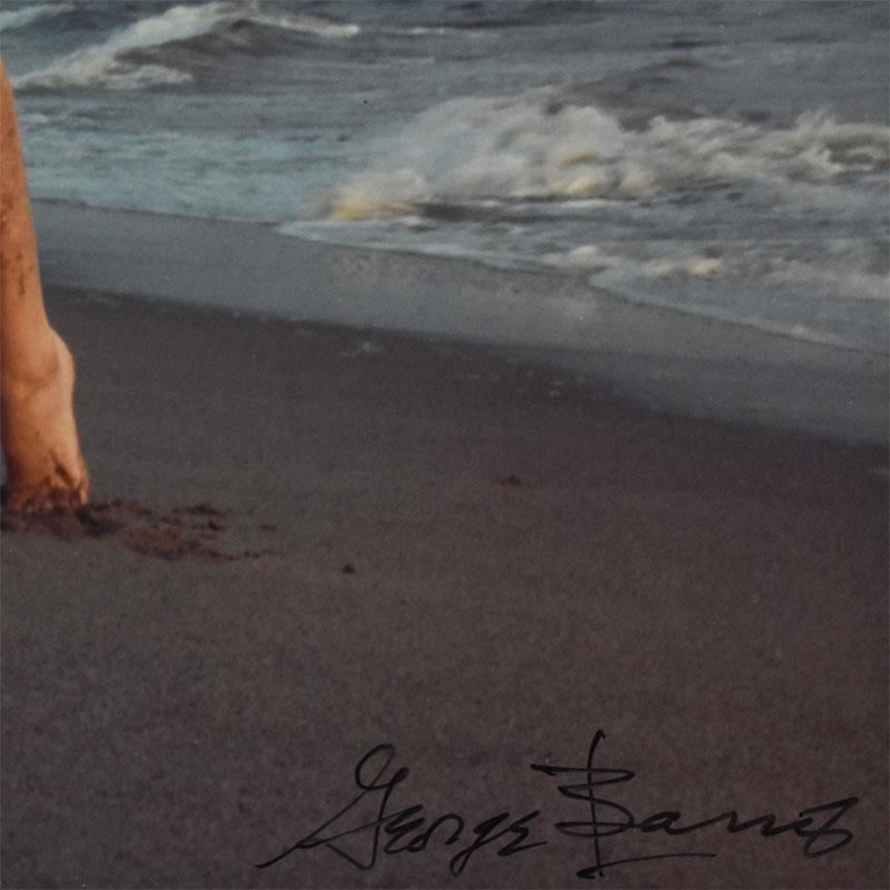 "Marilyn Monroe: The Last Shoot" is a photograph printed from the original negative taken by George Barris (1922-2016). This photo is part of a series entitled "The Last Photos" which were taken in 1962 just two weeks before Monroes death and are considered the last photos ever taken of the icon. This piece is hand signed by the photographer and bears the Edward Weston copyright stamp inverso and includes Letter of Authenticity. Measures approx. 8" x 10" (image).