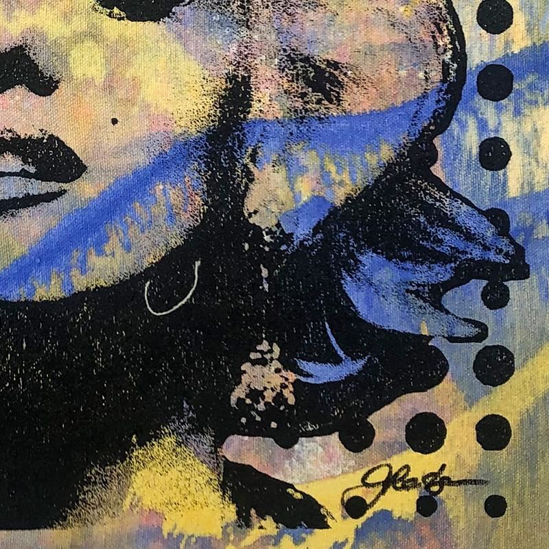 "Marilyn Monroe" is an original hand pulled silkscreen and acrylic painting on canvas by Gail Rodgers. Hand signed by the artist, the piece comes with a letter of authenticity. This piece is meant to be gallery wrapped and measure approximately 23" x 23" and image dimensions (after stretching) 16" x 16" (image).