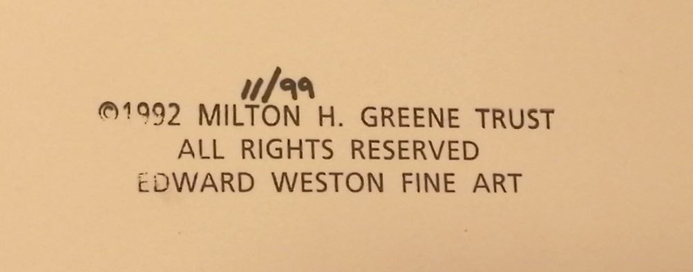 '(C) 1992 MILTON H.GREENE TRUST ALL RIGHTS RESERVED EDWARD WESTON FINE ART' Editioned '11/99' in ink