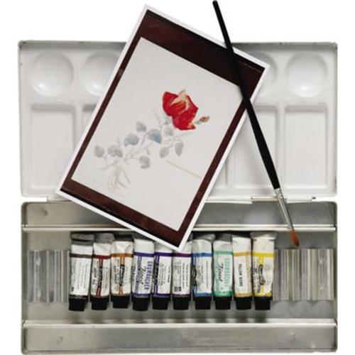 <B>Marilyn Monroe's Watercolor Paint Set.</B></I> A Grumbacher watercolor paint set with all but three tubes still pliable, used by Marilyn Monroe to paint images like the delicate watercolor rose she created for John F. Kennedy's birthday in 1962, a few months before her death. The consignor purchased the paint set from Julien's Auctions in West Hollywood, California in June of 2005; a copy of the receipt is included with the lot. In Very Good condition with signs of wear to case and paint tubes, accompanied by 4" x 6" photo of Monroe's watercolor to JFK.<BR><BR><b>Shipping:</b> Miscellaneous Collectibles, Larg (<a target="_blank" href="http://www.heritageauctions.com/common/shipping.php">view shipping information</a>)