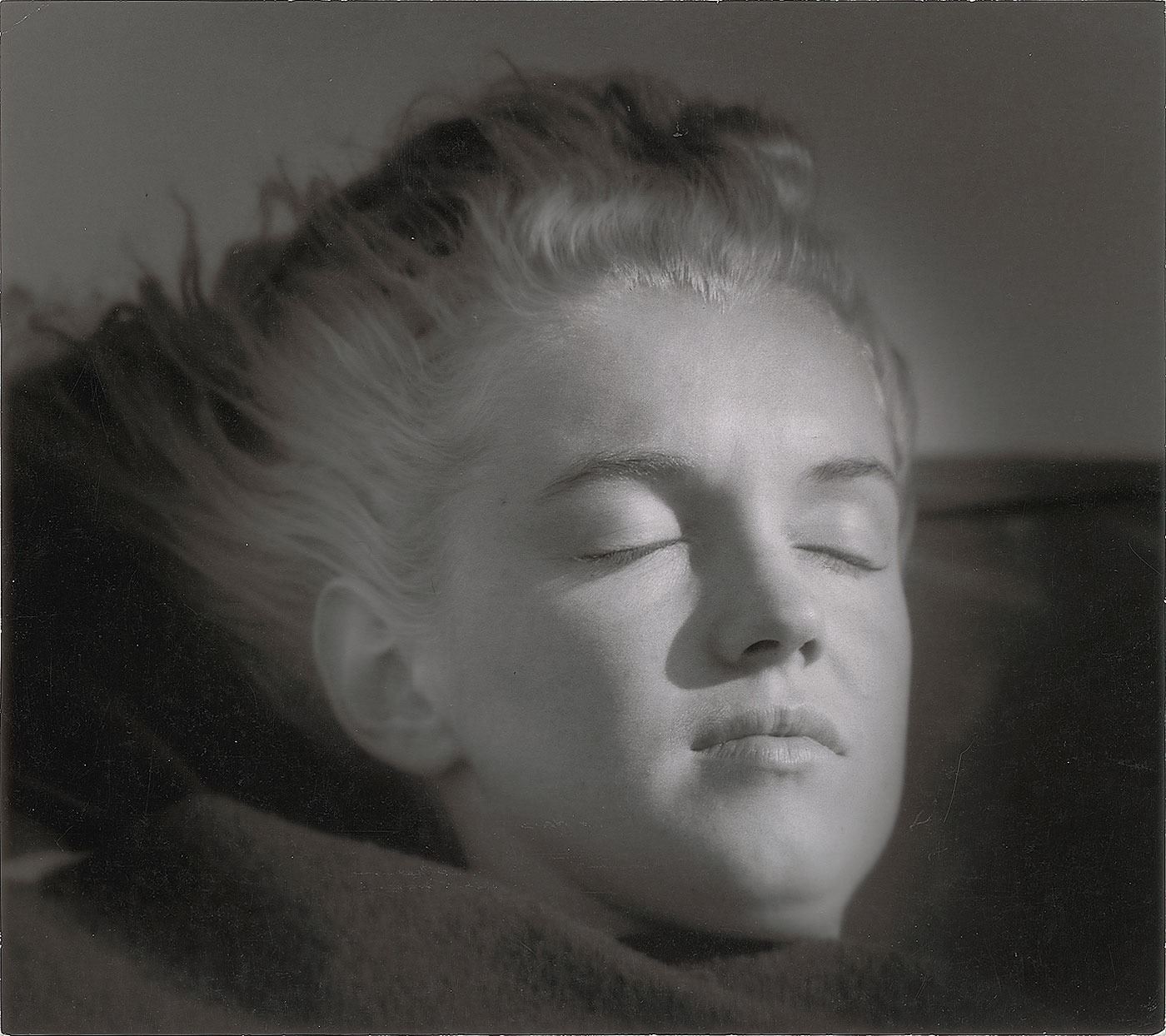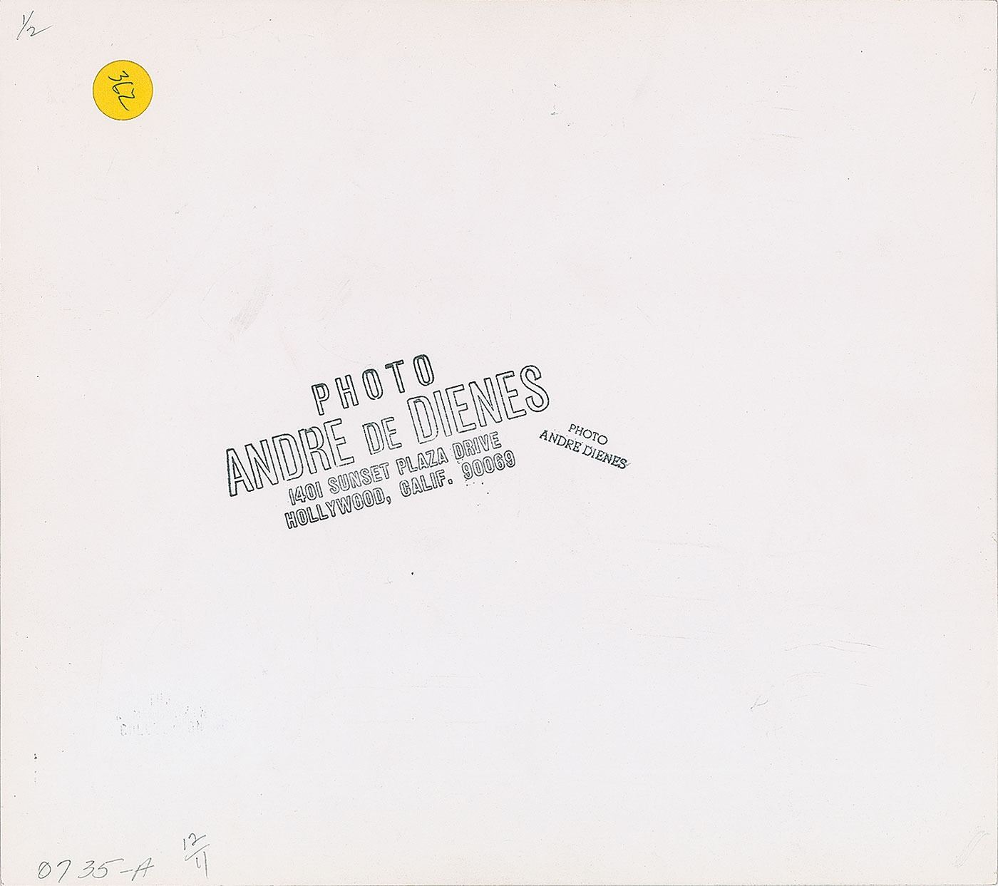 Beautiful original vintage glossy 12.25 x 11 silver gelatin photo of the young Monroe close-up, taken by Andre de Dienes in the summer of 1946. Reverse bears Andre de Dienes copyright stamps. In fine condition, with a small crease to the upper left corner tip.