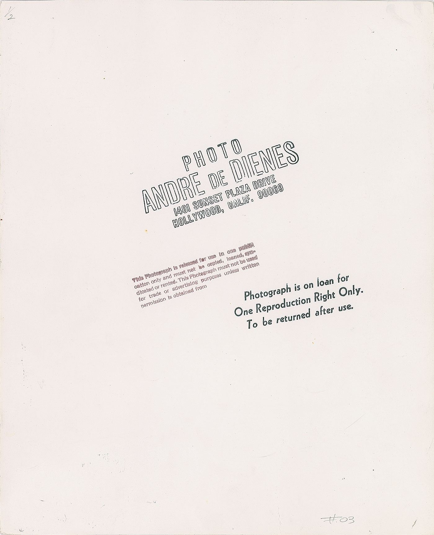 Stunning original vintage glossy 11 x 13.5 silver gelatin photo of Monroe in a white towel, taken by Andre de Dienes at the Bel Air Hotel in 1953. Reverse bears Andre de Dienes copyright stamps. In fine condition, with a couple of small creases and some light crazing to the emulsion.