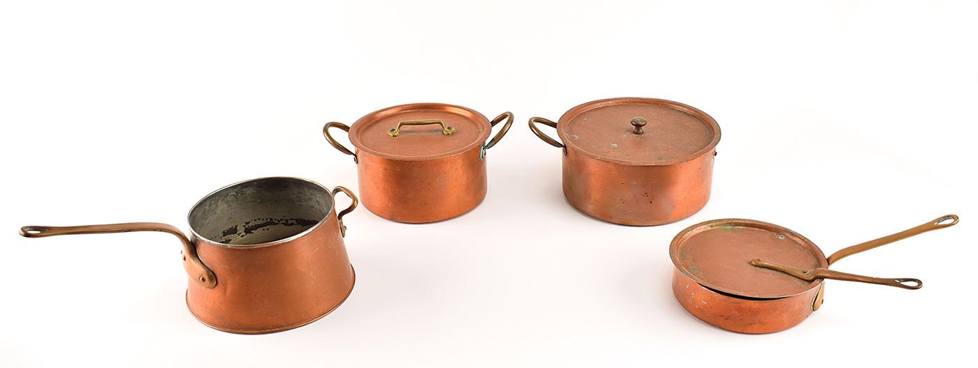 Marilyn Monroe's personally-owned group of four pieces of copper cookware, including three pots marked "Country Kitchen" on the bottom, and one unmarked. In overall very good to fine condition, with expected signs of use. Provenance: Part of Lot 116, Marilyn Monroe Auction - Property From The Collection of David Gainsborough-Roberts, The Estate of Lee Strasberg, and Déjà vu, Julien's, November 17, 2016. For pots from the same set, see: Lot 401, The Personal Property of Marilyn Monroe, Christie’s, New York, Sale No. 9216, October 27 & 28, 1999.