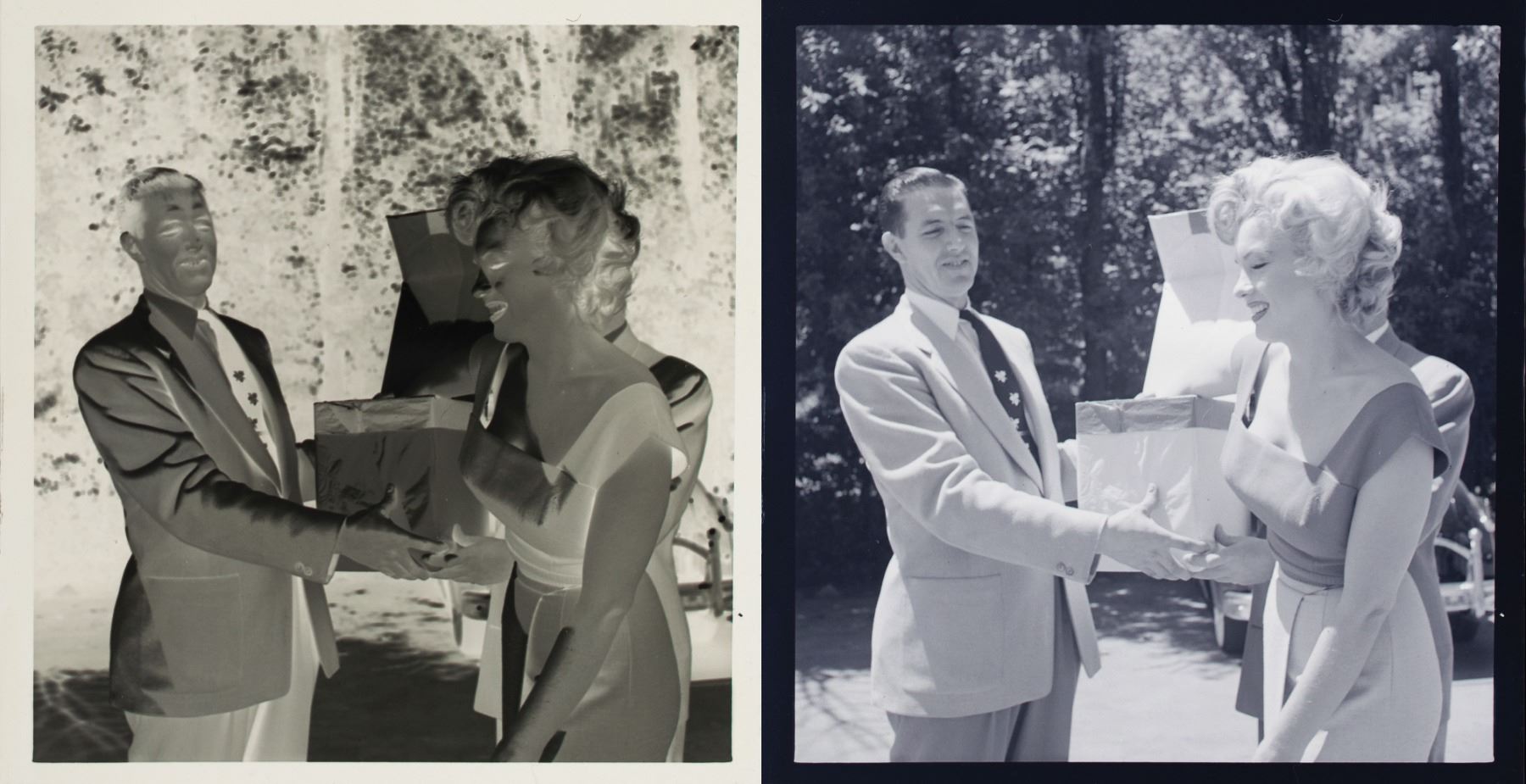 Extraordinary archive of 227 photographic negatives taken by Canadian journalist and photographer Jock Carroll in 1952 while Marilyn Monroe was shooting the film noir thriller Niagara. Of the 227 images in the archive, 198 of them depict Marilyn Monroe—others are of sets, scenery, Niagara Falls, and so on. Most importantly, the copyright to these images conveys with the sale of the negatives: when Jock Carroll left Weekend Magazine, copyright to all his photographs was signed over to him. Later, Carroll signed over copyright to his son, Angus Carroll, who holds it now and will grant it to the purchaser. This would give the buyer the right to print and sell copies, although commercial use would require permission from the estate of Marilyn Monroe.