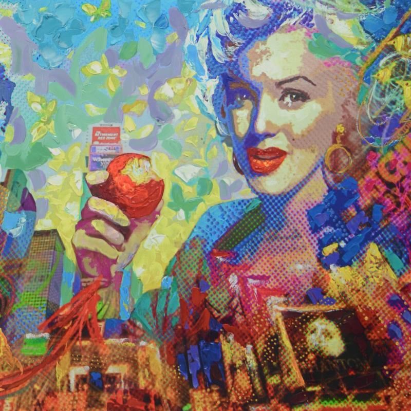 "Marilyn New York" is a one-of-a-kind mixed media on canvas by Mark Braver, hand signed by the artist. Includes Letter of Authenticity. Measures approx. 27.5" x 13.5" (image).