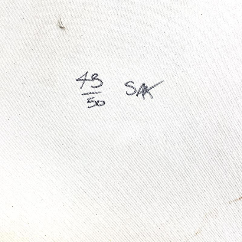 "Marilyn" is a hand painted, hand pulled unique variation silkscreen on canvas by Andy Warhol protege, Steve Kaufman (1960-2010). This piece is numbered 43/50 and hand signed inverso by the artist. Includes Letter of Authenticity. Measures approx. 14" x 1