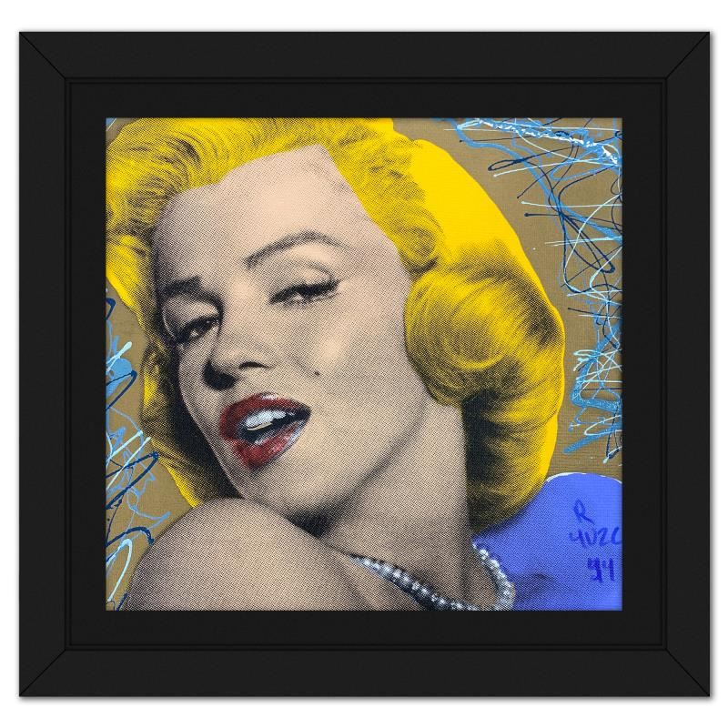 "Marilyn with Pearls" is a one-of-a-kind hand-pulled mixed media silkscreen on canvas by Ringo (Daniel Funes) - protege of Andy Warhol's apprentice, Steve Kaufman.This piece is hand signed by the artist. This piece comes custom framed. Includes Letter of Authenticity. Measures approx. 17.5" x 17.5" (frame), 14.5" x 14.5" (image). This item requires special handling and may have a longer than usual turnaround.