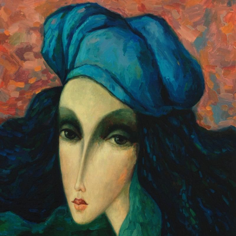 Combining time-honored religious icon painting with western style portraiture, the hauntingly beautiful art of Sergey Smirnov (1953-2006) is inspired by the 'Parsuna' art movement. "Marina" is a limited edition mixed media on canvas, printed in 2006, numbered in verso and hand signed by the artist. Includes Certificate of Authenticity! Measures approx. 13" x 17" (image).