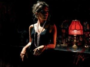 A redlight zone romance awaitsin this 13.5x18" LE Canvas stretched-Giclee by Fabian Perez