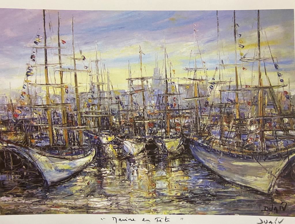 Marine Et Fete by Duaiv. Limited Hand Signed Lithograph on Paper. Dimensions: 9 x 12.5. Excellent Condition.