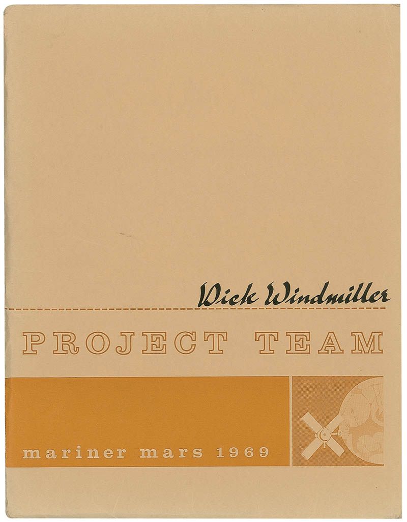Official Mariner Mars 1969 Project Team folder distributed to employees of the project, 8.5 x 11.25, containing 13 press photos, three color, related to the project, a pamphlet about the Mariner spacecraft featuring information and images, and two typed letters on Jet Propulsion Laboratory letterhead, December 15 and 19, 1969, in part: “Success in the dual Mars encounter owes much to the efforts of each of you, for…the mission was a product of the whole Laboratory…It is a pleasure to give you the enclosed representative set of photographs, selected from more than 200 returned from near Mars, as a memento of the achievement in which you have shared.” In fine condition, with some light creases to the folder and slight separation to the top of the spine. Accompanied by an original color satin-finish 10 x 8 photo of a Mariner spacecraft, and a 1963 National Geographic publication featuring an article entitled ‘Mariner Scans a Lifeless Venus.’