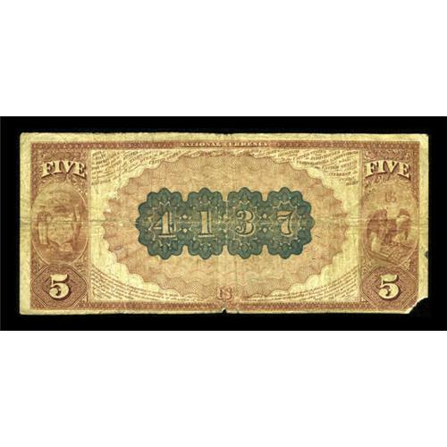 <B>Marinette, WI</B></I> - $5 1882 Brown Back Fr. 471 <B>The Stephenson NB</B></I> Ch. # 4137<BR> This becomes only the fifth Brown Back known from this bank. The signatures are quite strong, but the lower left corner is missing. A few pinholes are also strewn about. Rarity will be the bidding factor here. Technically VG, but <B>Good-Very Good </B></I>because of the damage sustained.<BR><I>From The Walla Walla Collection</B></I><BR><BR><b>Shipping:</b> Coins & Currency (<a target="_blank" href="http://www.heritageauctions.com/common/shipping.php">view shipping information</a>)