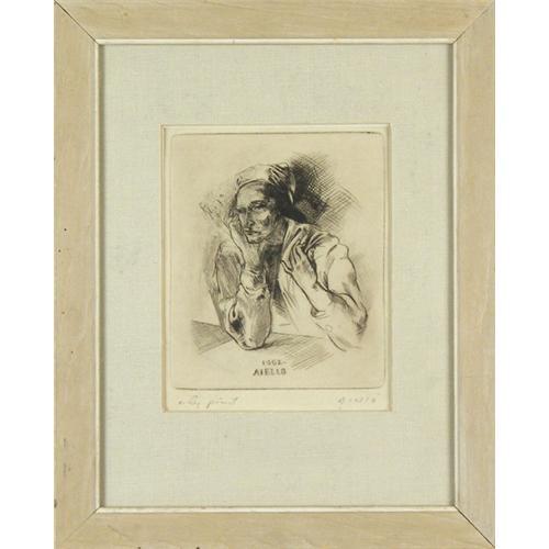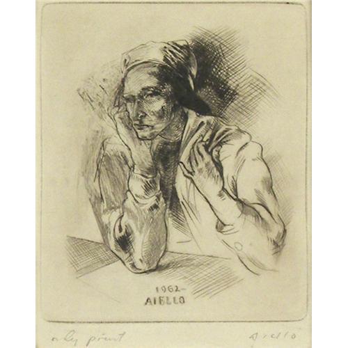 Mario Aiello, Etching, Portrait, 1962, image size 5 3/4" x 4 7/8", pencil signed