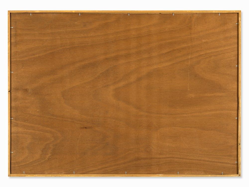 The sculpture is in good condition and comes mounted in a wooden frame. Soft crease marks upper left and staining on the left edge as well as above the butterfly can be seen. The work has a total dimension in the frame of 73 x 103 x 5 cm.