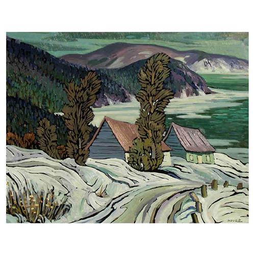 [Canadian 1920-1985] MAISONS AU BORD DE L'EAU Oil on masonite 24 x 30 in. Signed & titled.