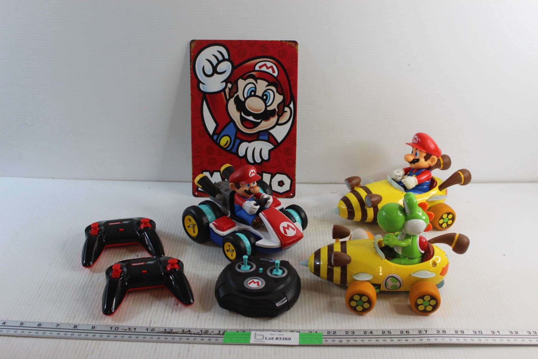 Mario Sign 12'' x 8'', Mario & Yoshi Cart Toys with Remotes - As Is