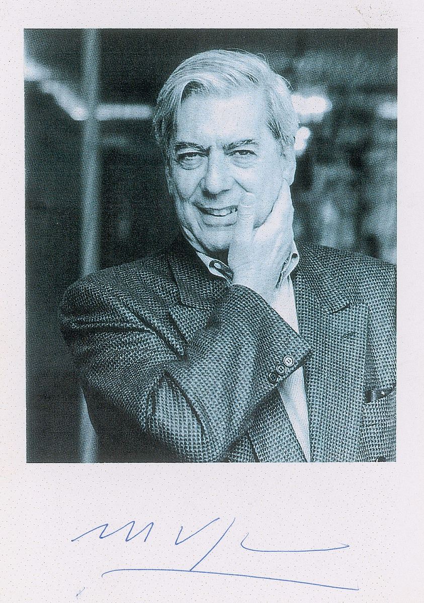 Versatile Peruvian writer (born 1936) who received the 2010 Nobel Prize in Literature. Laserprint 4 x 6 photo of Llosa, signed in the lower border in blue ballpoint. In fine condition.