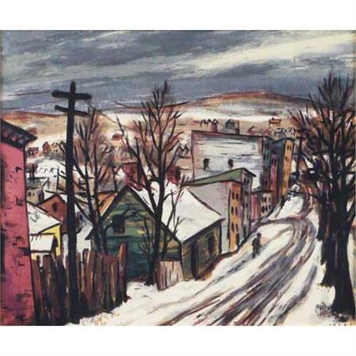 Marion Cronk (1906-1992) Attributed Central City Gouache 13 1/2" x 16"
