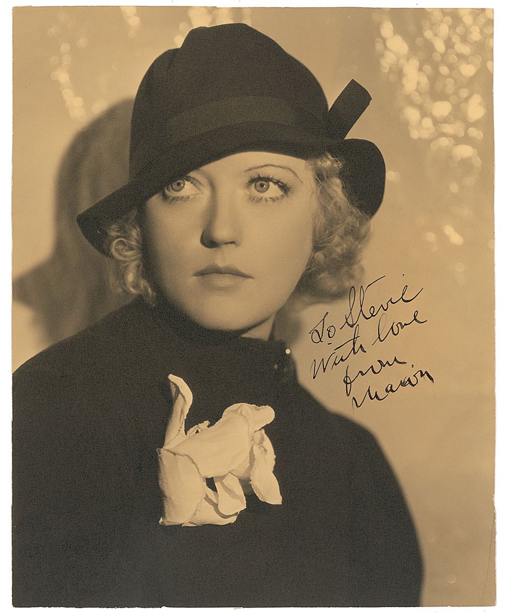 Stunning vintage matte-finish 8 x 10 publicity photo of Davies, signed and inscribed in fountain pen, “To Stevie, with love, from Marion.” In fine condition, with slightly trimmed edges. Accompanied by a certificate of authenticity from PSA/DNA. Provenance: William Collier Family Collection.