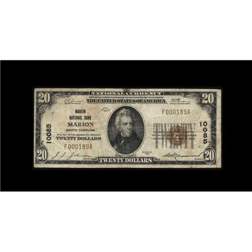 Marion, SC - $20 1929 Ty. 1 Marion NB Ch. # 10085This F Marion, SC