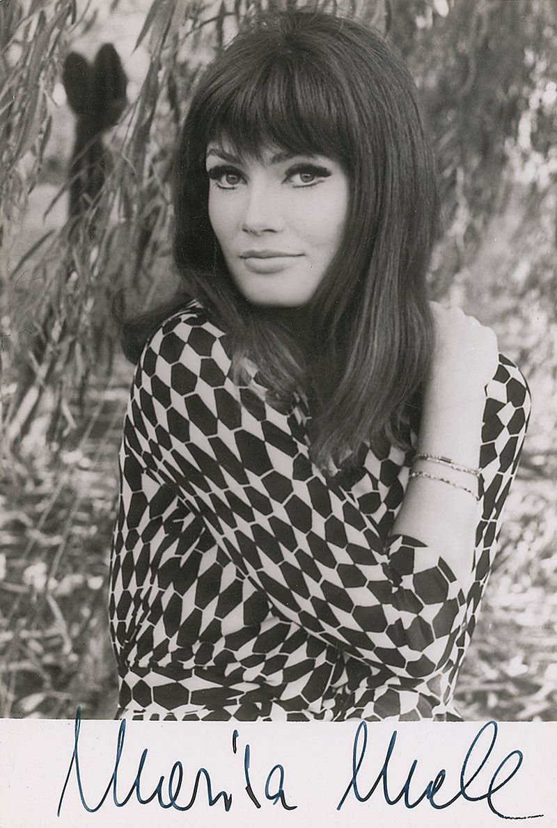 Actress (1939–1992) who became a cult figure of 1960s Italian B-movies. Glossy 4 x 6 photo, signed in the lower border in black ink. In fine condition.