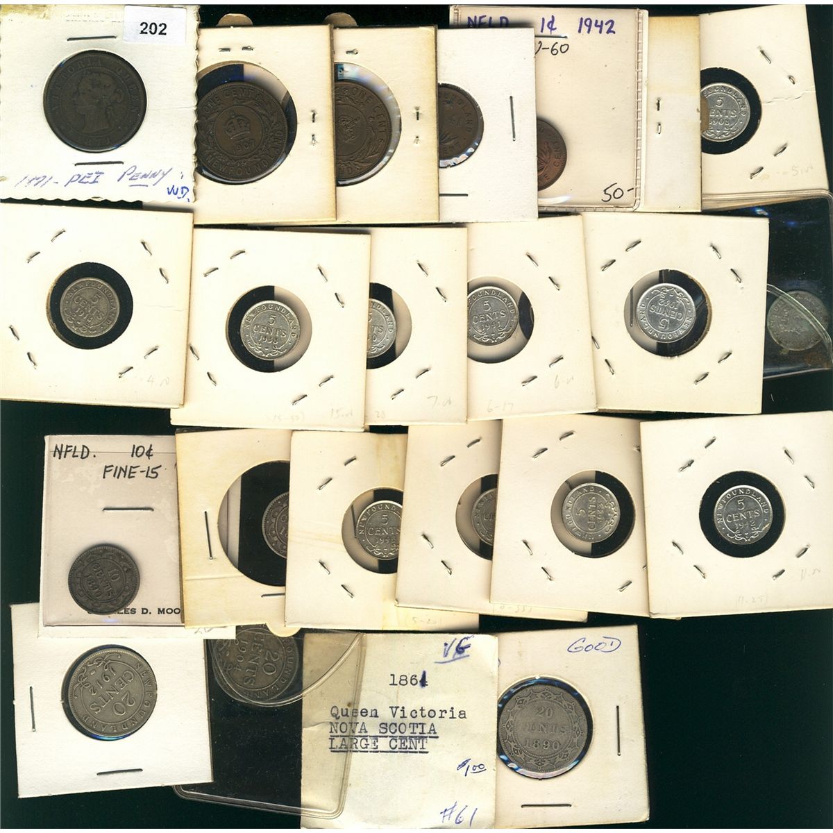 Maritime Coin Lot; includes PEI 1871 1¢, NS 1861 1¢(2), NFLD, 1907 1¢, 1929, 1941, 1942, 5¢ 1876, 1