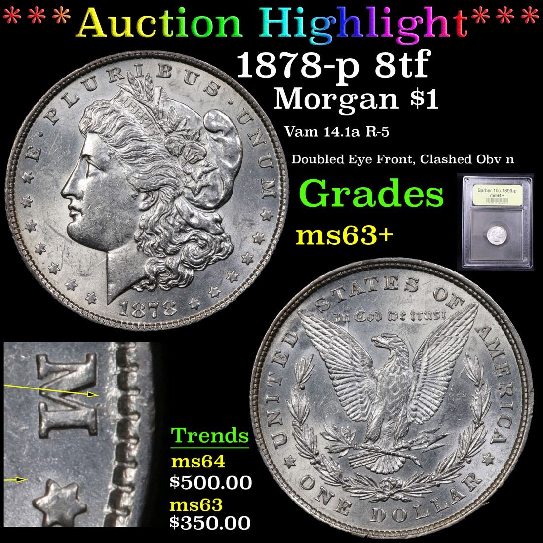 ***Auction Highlight*** 1878-p 8tf Vam 14.1a R-5 Doubled Eye Front, Clashed Obv n Morgan Dollar $1 Grades Select+ Unc. A Corey's Pick