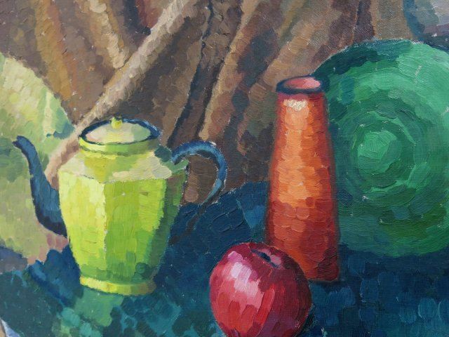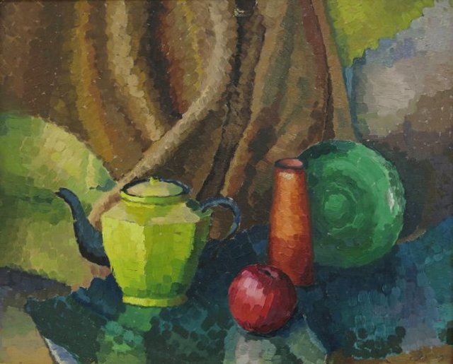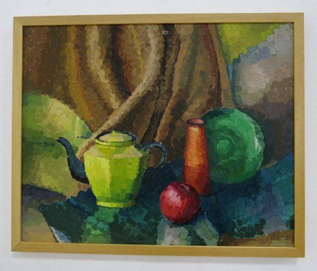 Oil on board. Framed. Signed on rear. Marjorie Kolbe, American (20th C.) Approx. 18"h 22" W unframed, 19" H x 23" W framed. Property of a Bernardsville NJ collection. (4069)