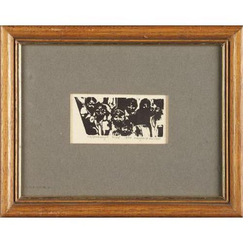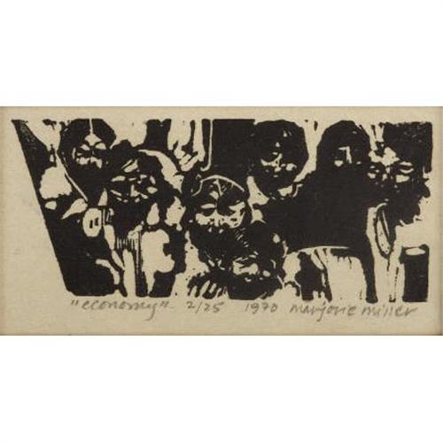 <B>MARJORIE MILLER (American, 20th Century)</B></I><BR><I>Economy</B></I>, 1970<BR>Woodblock on paper<BR>1-1/2 x 3-1/4 inches (3.8 x 8.3 cm)<BR>Ed. 2/25<BR>Signed in pencil lower right: <I>1970 Marjorie Miller</B></I><BR> <B>Condition Report:</B> Matted and framed, not examined out of frame.<BR><BR><b>Shipping:</b> Framed - with Glass, Small (<a target="_blank" href="http://www.heritageauctions.com/common/shipping.php">view shipping information</a>)