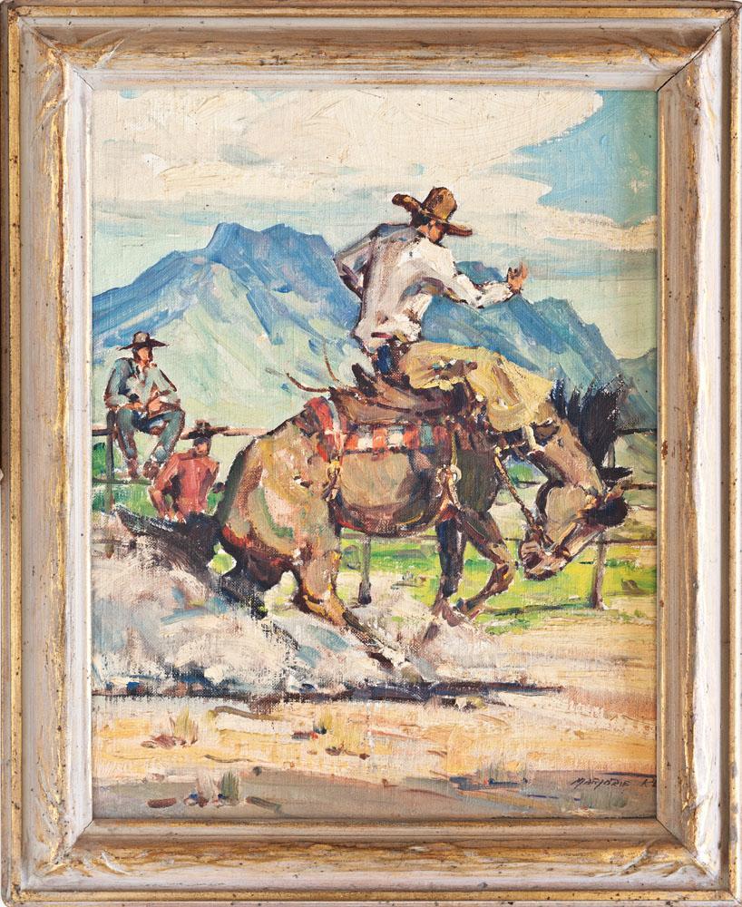 Untitled Bucking Horse 18” x 14” Framed to 22” x 18” Oil on board Signed lower right Marjorie Reed
