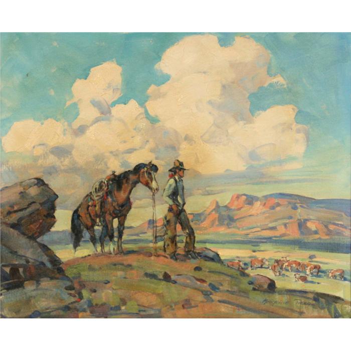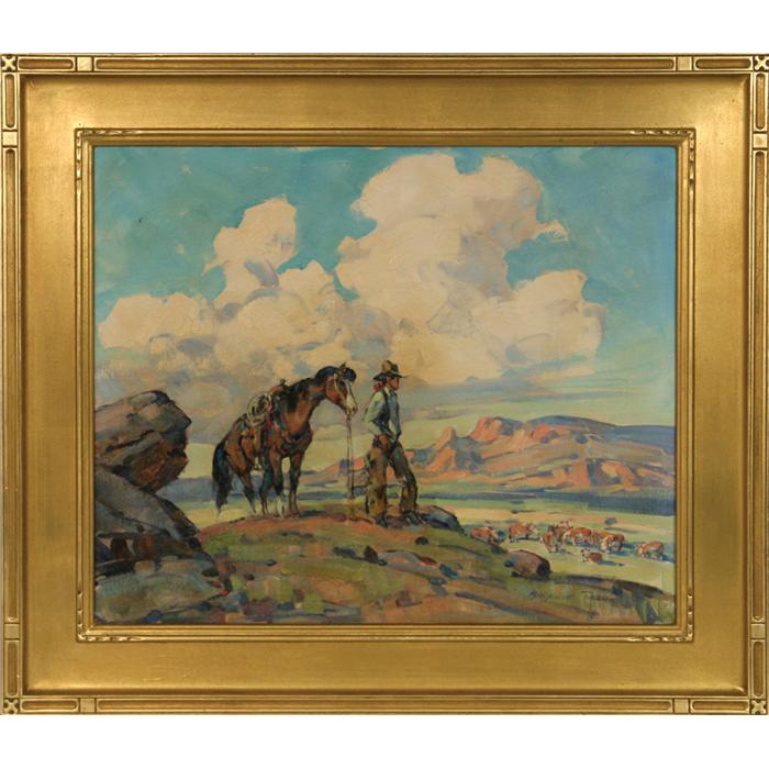 Marjorie Reed (1915-1996) Life on the Range. 20" x 24" oil on board. Signed lower right. (est $6,000-8,000)