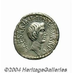 Mark Antony and Octavian.. 41 B.C. AR denarius (18 mm, 3.60 g). Ephesus. M. Barbatius Pollio, moneyer. Bare head of Antony right / Bare head of Octavian right, with slight beard. Crawford 517/2; HCRI 243; Sydenham 1181; RSC 8a. Toned VF.From the Morris Geiger Collection. Important notice: Heritage usually auctions material at the rate of 200-250 lots per hour. On some occasions eBay Live bid software or the Internet may not be able to keep up with the pace of the auction. We recommend placing a realistic absentee bid now as insurance to avoid disappointment. Occasionally the auctioneer may eliminate or reject an eBay Live bid, and the auctioneer may also reopen a lot after the close of the eBay live bidding (usually because we missed an audience bid), and may reject your bid even if it shows you as the winning bidder. By bidding via eBay Live, you agree that Heritage may award the lot to another bidder at its sole discretion under the circumstances described above or any other reasonable circumstances. Also please note that all Heritage lots purchased through eBay Live carry a 20% Buyer's Premium. Please make sure you read the Terms and Conditions before you bid.