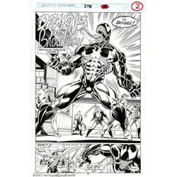 Mark Bagley and Randy Emberlin - Amazing Spider-Man #378, Splash Page (Marvel, 1993). From Maximum Carnage, Chapter 3 of the Amazing Spider-Man series comes this terror-de-force by Mark Bagley and Randy Emberlin. Bagley's Venom is raw and sinewy. Randy Emberlin's inks are crisp and tight. This page practically explodes with a horrific energy. A great page from a major story arc. 11" x 17". Important notice: We expect to be auctioning lots at the rate of 200-250 per hour. Sometimes eBay Premier live bid software cannot keep up with that pace, so we strongly recommend that you place a realistic proxy bid now as insurance to avoid disappointment. Also please note that all Heritage/CAA lots purchased through eBay Premier carry a 20% Buyer's Premium. Please make sure you read the Terms and Conditions.