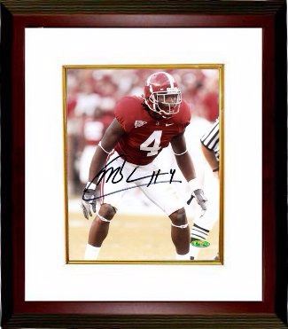 As a sophomore for the 2009 Alabama Crimson Tide football team, Mark Barron took over as a starter at safety and was second on Alabama's National Championship team with 74 tackles and an SEC leading seven interceptions and a touchdown. Mark Barron was named to the 2010 Jim Thorpe Award preseason watch list. Barron Finished the 2010 season with 77 tackles and three interceptions. He was named an FWAA All American for his stellar season. He was drafted by the Buccaneers in the first round of the 2012 NFL Draft with the 7th overall pick. Mark Barron has hand signed this Alabama Crimson Tide 8x10 Photo. Custom White Mat and Premium Mahogany Frame as shown. Tri-Star Hologram and Certificate of Authenticity.