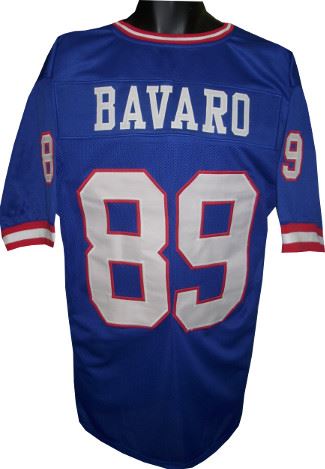 Mark Bavaro spent nine years in the NFL as one of the league's best tight ends. Over the course of his career he played for the New York Giants, Cleveland Browns and Philadelphia Eagles, making his greatest mark with the Big Blue, as he helped guide them to two Super Bowls (in 1986 and 1990) and was twice named to the Pro Bowl. This is a Mark Bavaro New York Giants unsigned Blue TB unlicensed custom-prostyle jersey with twill stitched nameplate and numbers. perfect for autograph or to wear! Size XL