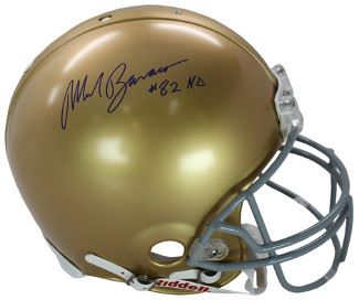 Mark Bavaro spent nine years in the NFL as one of the league's best tight ends. Over the course of his career he played for the New York Giants, Cleveland Browns and Philadelphia Eagles, making his greatest mark with the Big Blue, as he helped guide them to two Super Bowls (in 1986 and 1990) and was twice named to the Pro Bowl. Prior to his stellar NFL career Mark Bavaro was a standout player at Notre Dame University. Mark Bavaro has hand signed this Notre Dame Full Size Authentic Helmet with #82 ND Inscription. Steiner Sports Hologram and Certificate of Authenticity.