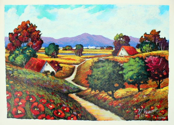 Artist: Mark Braver - Title: Mysterious River - Medium: Serigraph on Fine Art Paper - Signature: Hand-signed by the Artist - Limited Edition: 490 - Image Size: Approximately 11.25 inches x 16 inches - Paper Size: Approximately 13 inches x 17.5 inches - Unframed - Details: This work comes with a Certificate of Authenticity - Mark Braver's Artwork Is Unique In Its Vivid Colors And Special Textures. His Compositions Come To Life On The Canvas In An Abundance Of Colors While His Unique Layering And Texturing Techniques Lend The Paintings An Unusual Quality.